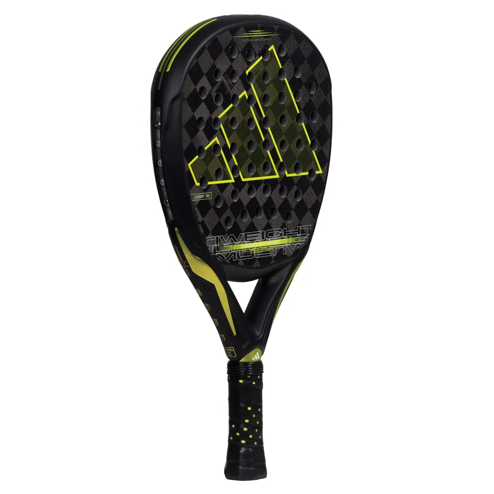 Het adidas Adipower Multiweight 3.3 padel racket heeft een sterk frame dankzij de carbon structuur in de kern. Het padel racket heeft een fijne balans en gewicht die eventueel aangepast kan worden tot 9 gram. Aan de zijkant van het padel racket kunnen er totaal 7 schroeven verdeeld worden om het racket op uw voorkeur aan te passen. Met dit racket kunt u krachtige slagen maken en de bal een spineffect geven.
