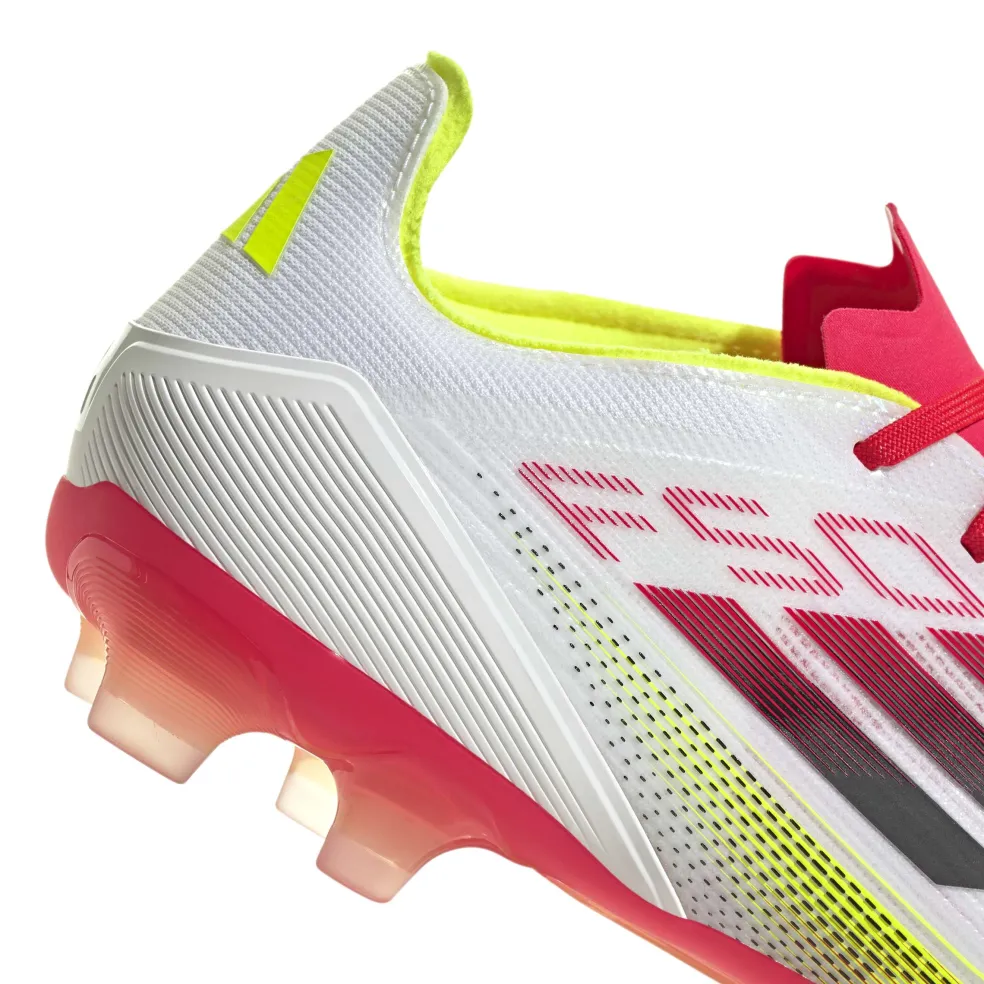 De adidas F50 Pro MG voetbalschoenen zijn lichtgewicht en geschikt voor gebruik op kunstgras en natuurgras. Het Fibertouch bovenwerk heeft een Sprintweb 3D-textuur voor extra controle en een goede pasvorm. De Compression Fit Tunnel Tongue zet samen met het bovenwerk de voet goed vast.