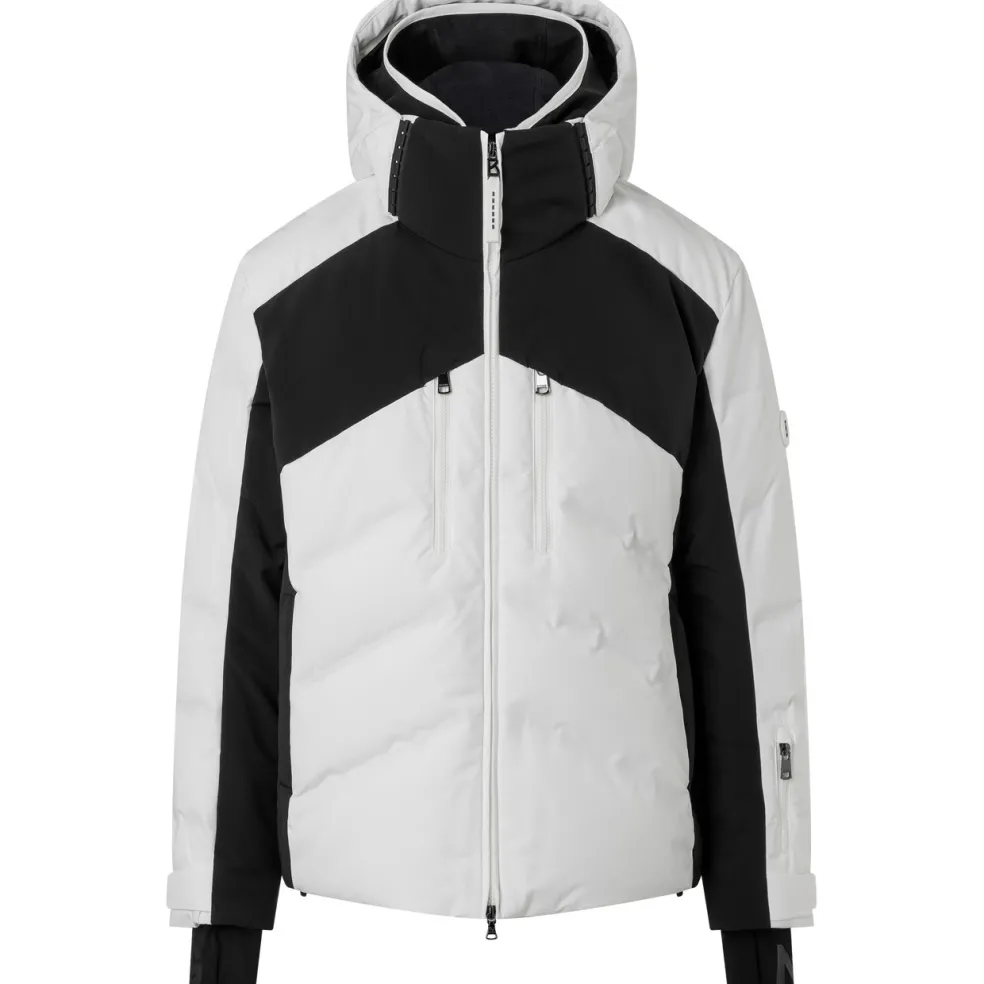De BOGNER Jervis winterjas heeft elastische, verstelbare manchetten om zoveel mogelijk wind buiten de jas te houden. De hoge kraag houdt de wind uit uw nek en omdat de capuchon aanpasbaar is, kunt u ook zoveel mogelijk wind van uw hoofd afhouden. Benodigdheden kunt u veilig meenemen in een van de ritszakken en uw skipas is altijd binnen handbereik, dankzij de speciale skipashouder op de mouw. De isolatie van deze Jervis jas biedt aangename warmte, terwijl de waterdichte buitenlaag bescherming biedt tegen de weersinvloeden.