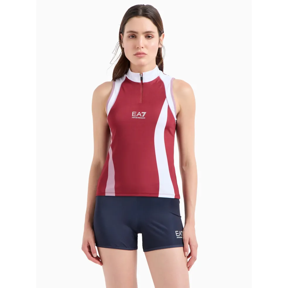 De EA7 6DTH57-TJ04Z tennis tanktop voor dames heeft een strak strependesign die voor een sportieve uitstraling zorgt. Deze tanktop heeft een 1/4 ritssluiting, zodat de top doorgelucht kan worden als u het te warm heeft. Door het mouwloze design en het elastische materiaal heeft u alle bewegingsvrijheid.