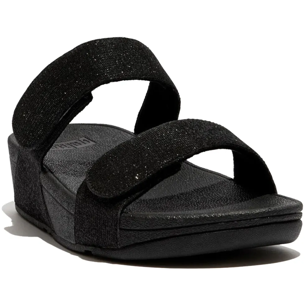 De FitFlop LuLu Adjustable Shimmerlux Slides slippers voor dames hebben een zacht bovenwerk die u kunt verstellen naar uw voetboog. Zo zitten de slippers de hele dag comfortabel en de dempende tussenzool, die gemaakt is met Microwobbelboard-technologie, zorgt voor nog meer comfort. De buitenzool geeft grip en deze opvallende sprankelende slippers passen onder elke outfit van de dag.