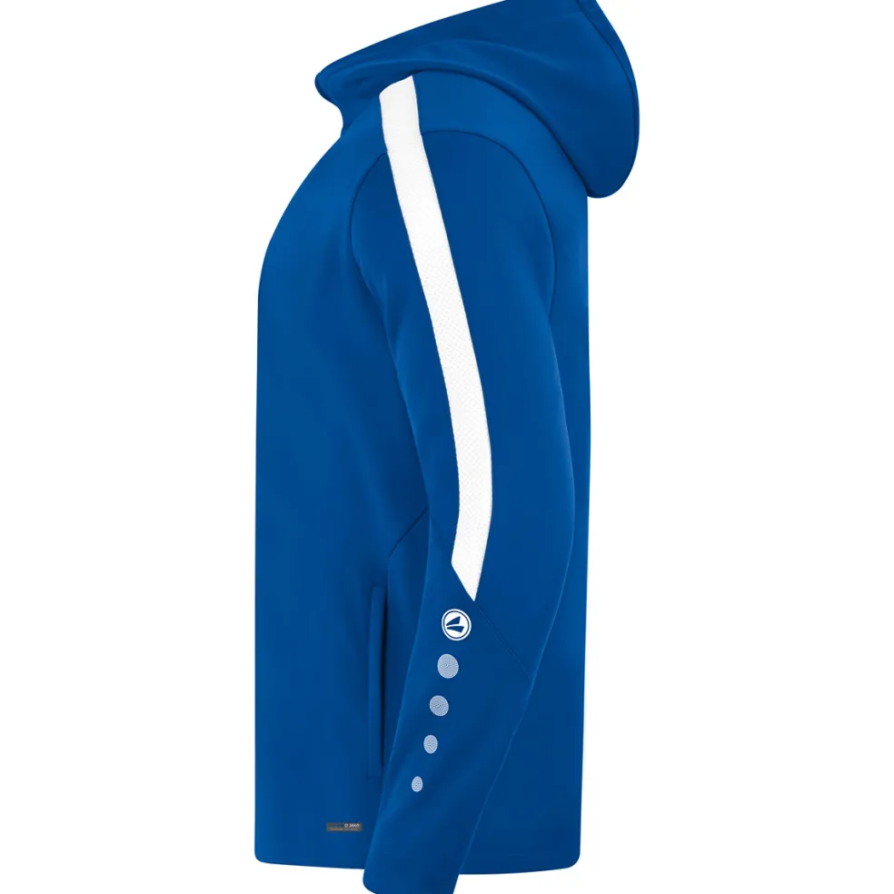 Het Power trainingsjack met capuchon van Jako is voorzien van opvallende designelementen aan de mouwen en is gemaakt van 100% polyester. Langs de armzijde bevindt zich een duidelijk contrasterende inzet in honingraatstructuur. De jas is uitgerust met een capuchon en ritssluitingen aan de zijzakken. Het fleece aan de binnenzijde van het Power trainingsjack voelt heerlijk zacht.