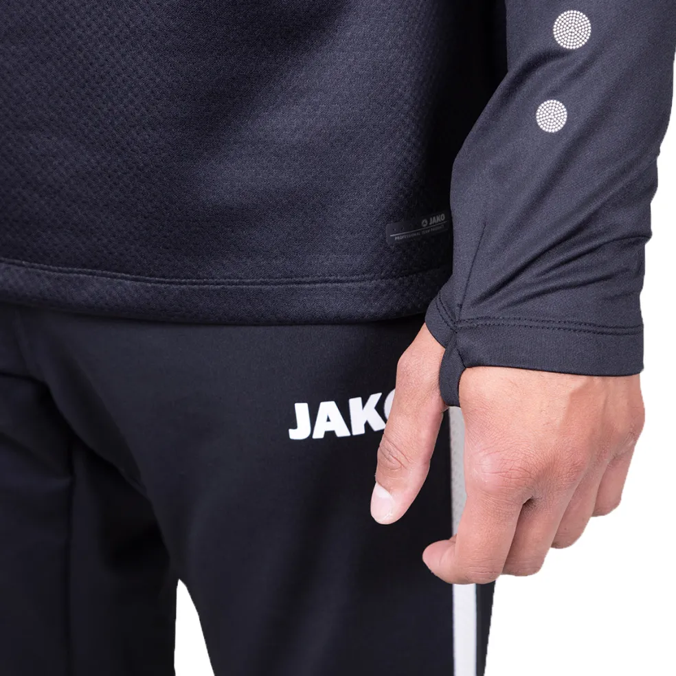 De Ziptop Power van Jako heeft een contrasterende inzet in honingraatstructuur wat een dynamisch element toevoegt. De mouwen, gemaakt van een elastische mix van polyester en elastaan, hebben duimopeningen voor extra comfort. Het lichte bodymateriaal transporteert vocht effectief naar buiten, waardoor u langer fris blijft.