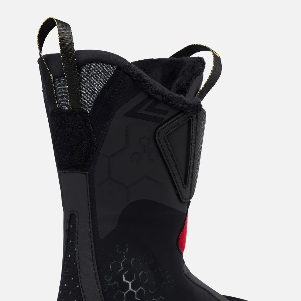 Deze Lange Shadow 96 LV skischoenen voor dames zorgen voor meer gevoel en comfort als u van de piste afgaat. De skischoenen zorgen voor een goede aansluiting door de flexibele verbinding tussen de boven en onder gespen. Daarnaast zorgt de naadloze voering ook voor een ideale pasvorm die de anatomie van de voet volgt. In het ontwerp is er rekening gehouden met de anatomische kuit van de vrouw, waardoor de manchet wat breder is voor een betere aansluiting.