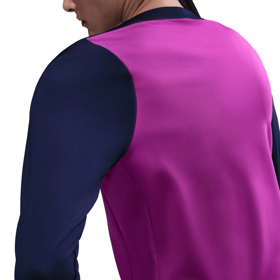 Het Nike FC Barcelona Strike trainingsshirt wordt gemaakt van materialen die transpiratievocht afvoeren, waardoor u gedurende uw training focus en een droog, fris, aangenaam gevoel behoudt. De lange mouwen zorgen ervoor dat u ook op de koudere dagen draagcomfort ervaart.