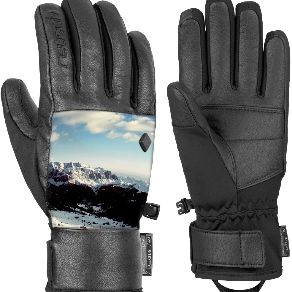 De Reusch Giorgia R-TEX XT handschoenen in de kleur black coloured mountain zijn warme skihandschoenen die zacht aanvoelen. Deze zachte, extra warme en waterdichte skihandschoenen voor dames combineert pure functionaliteit met een mooi design concept. Herkent u de berg op de backhand? Het is de “Rosengarten” in het hart van de Dolomieten.