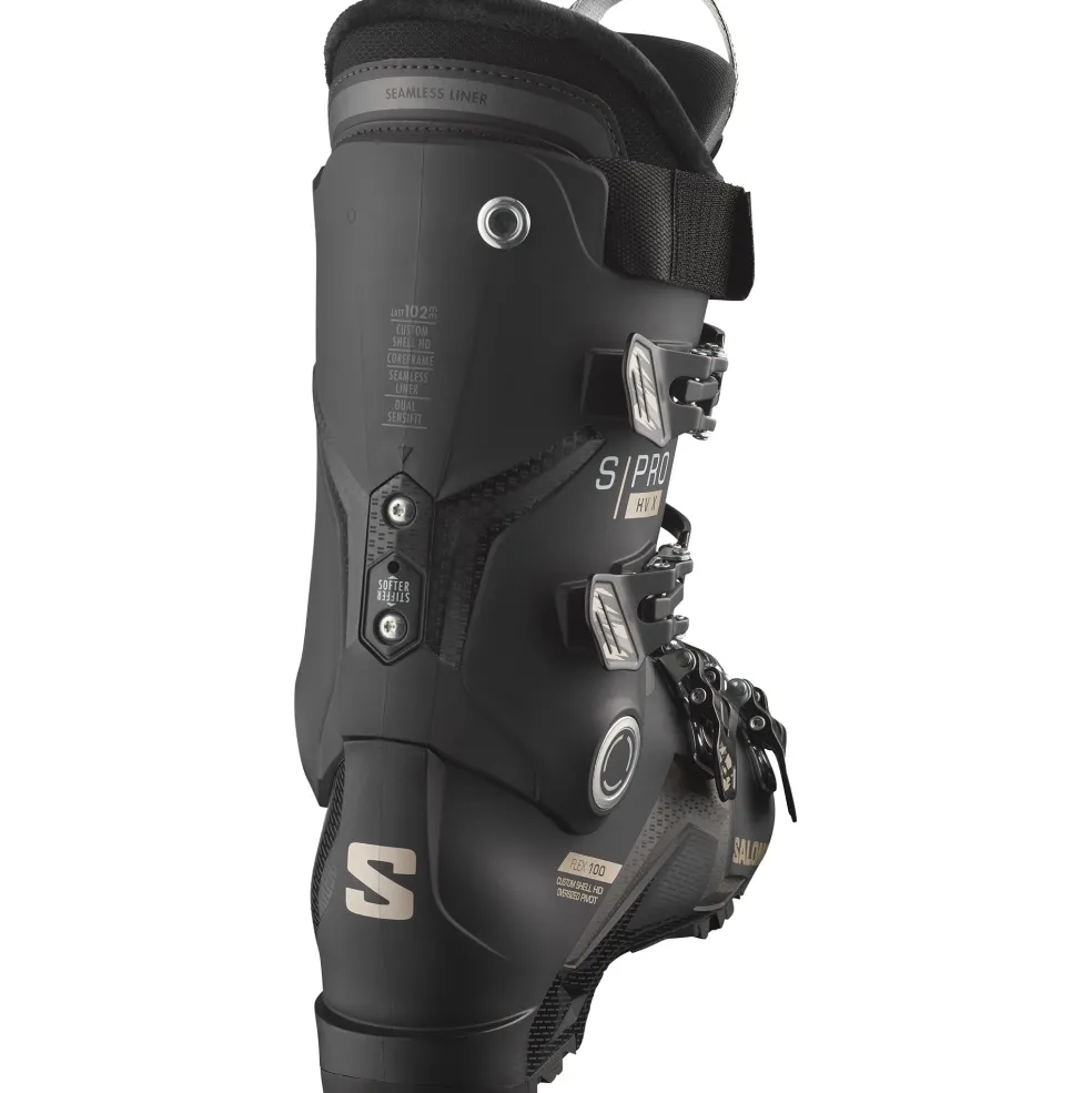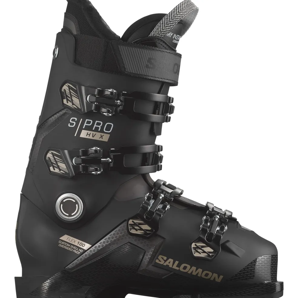 De Salomon S/Pro HV X100 skischoenen voor heren bieden een perfecte balans tussen comfort en prestaties voor skiërs met bredere voeten. De anatomische leest van 102 mm en de bredere shell-constructie zorgen voor meer ruimte en een betere pasvorm, zodat u comfortabel de hele dag op de piste kunt genieten. Het Dual Sensifit-inzetstuk maakt het aan- en uittrekken eenvoudig, terwijl de naadloze voorgevormde binnenschoenen extra comfort biedt.