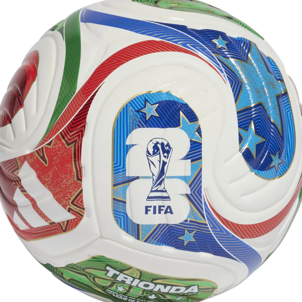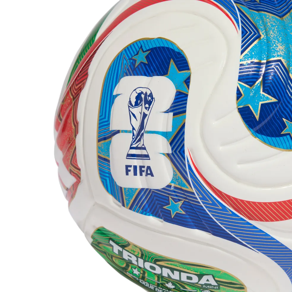 Deze adidas FIFA World Cup Trionda Mini voetbal heeft een vloeiend ontwerp met vier panelen, waardoor de mini voetbal ideaal is om uw vaardigheden mee te verbeteren. De voetbal is een nabootsing van de officiële wedstrijdbal FIFA World Cup 26.