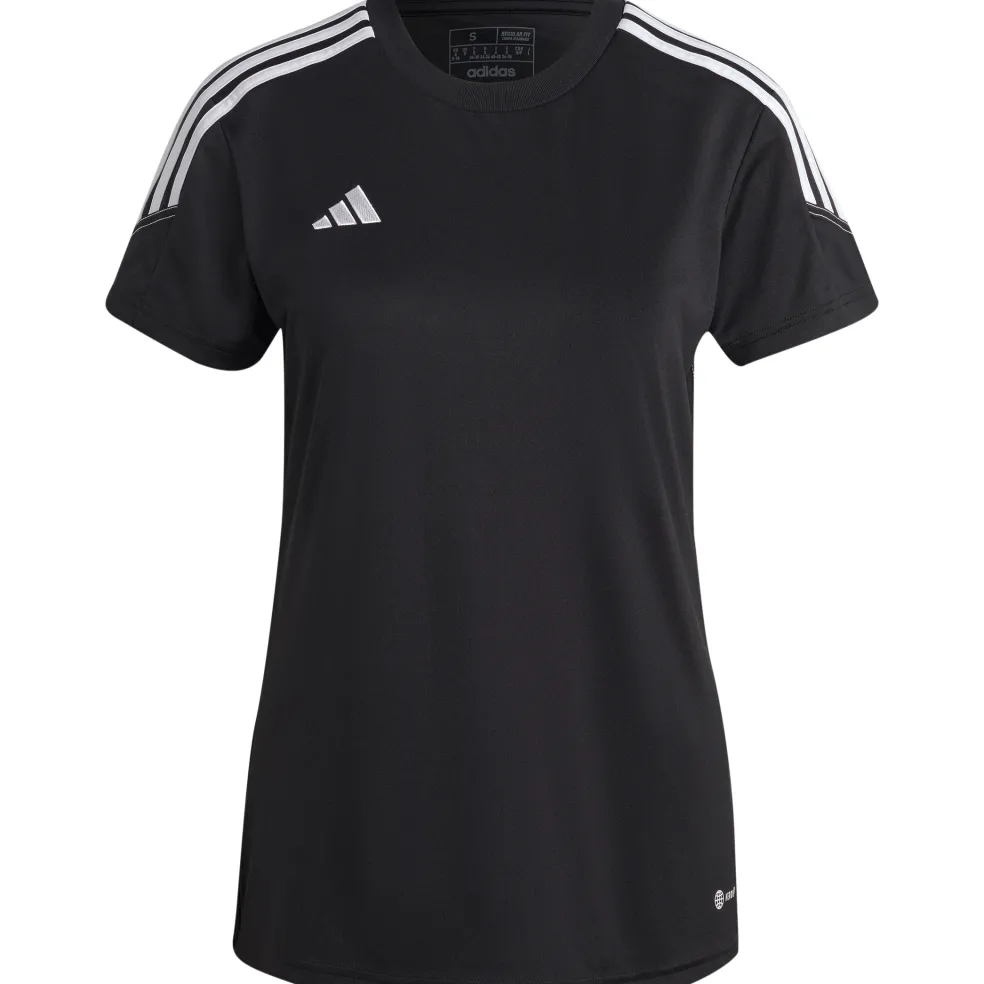Het adidas Tiro 23 Club voetbalshirt voor dames voelt licht aan en de stof droogt snel. Zo blijft het shirt comfortabel aanvoelen en is deze perfect om in te voetballen. Het shirt heeft opvallende strepen en het model valt los langs het lichaam.
