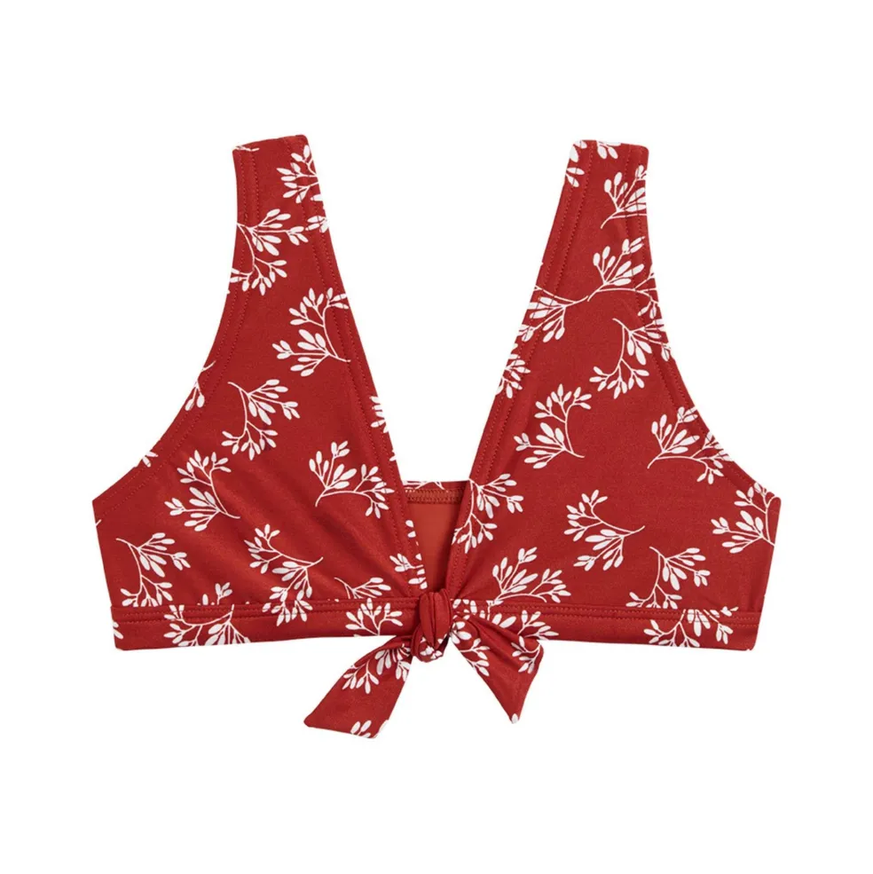 De Beachlife Little Leaves strik bikinitop junior heeft een opdruk van witte blaadjes. De Beachlife bikinitop heeft een diepe v-hals met knoopdetail aan de voorzijde. Op de rug heeft de top een handige sluitclip.