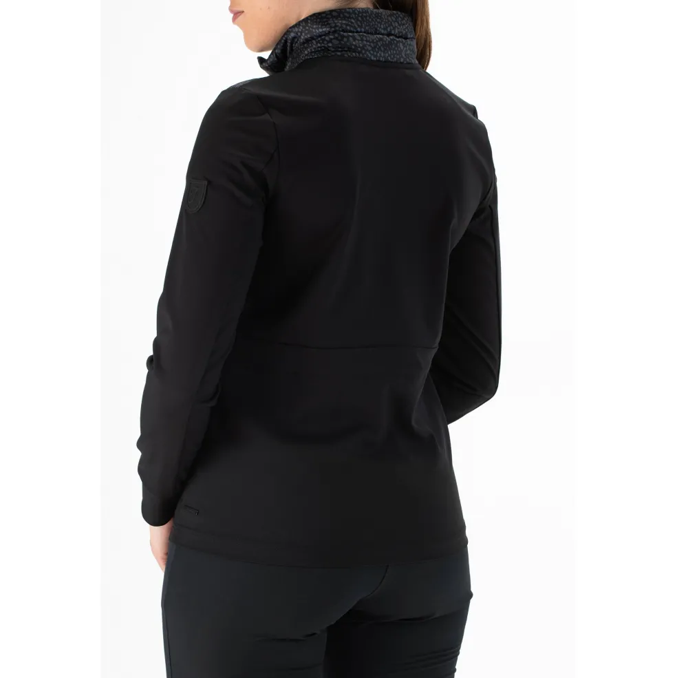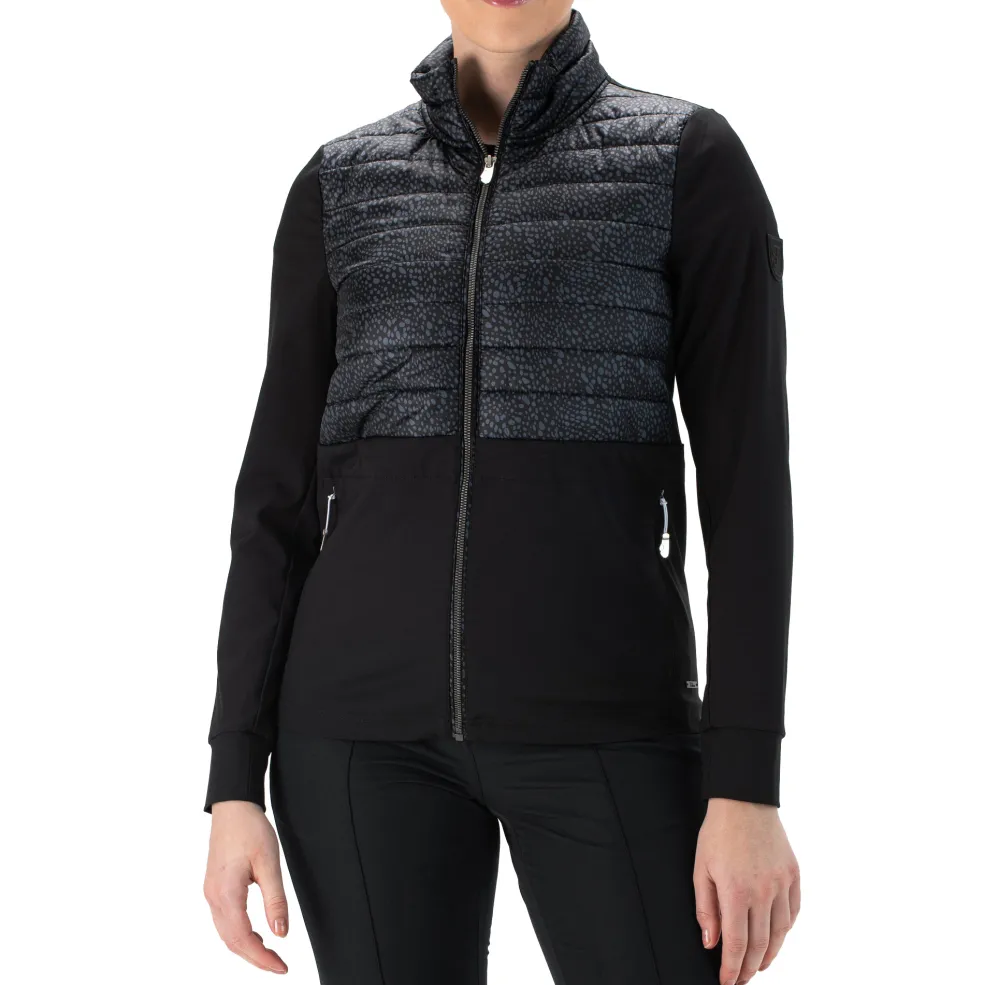 De voorkant van het Celia trainingsjack van Falcon is gevoerd en heeft een print. Het materiaal van het vest is rekbaar en rondom de taille zit een trekkoord voor een betere pasvorm.