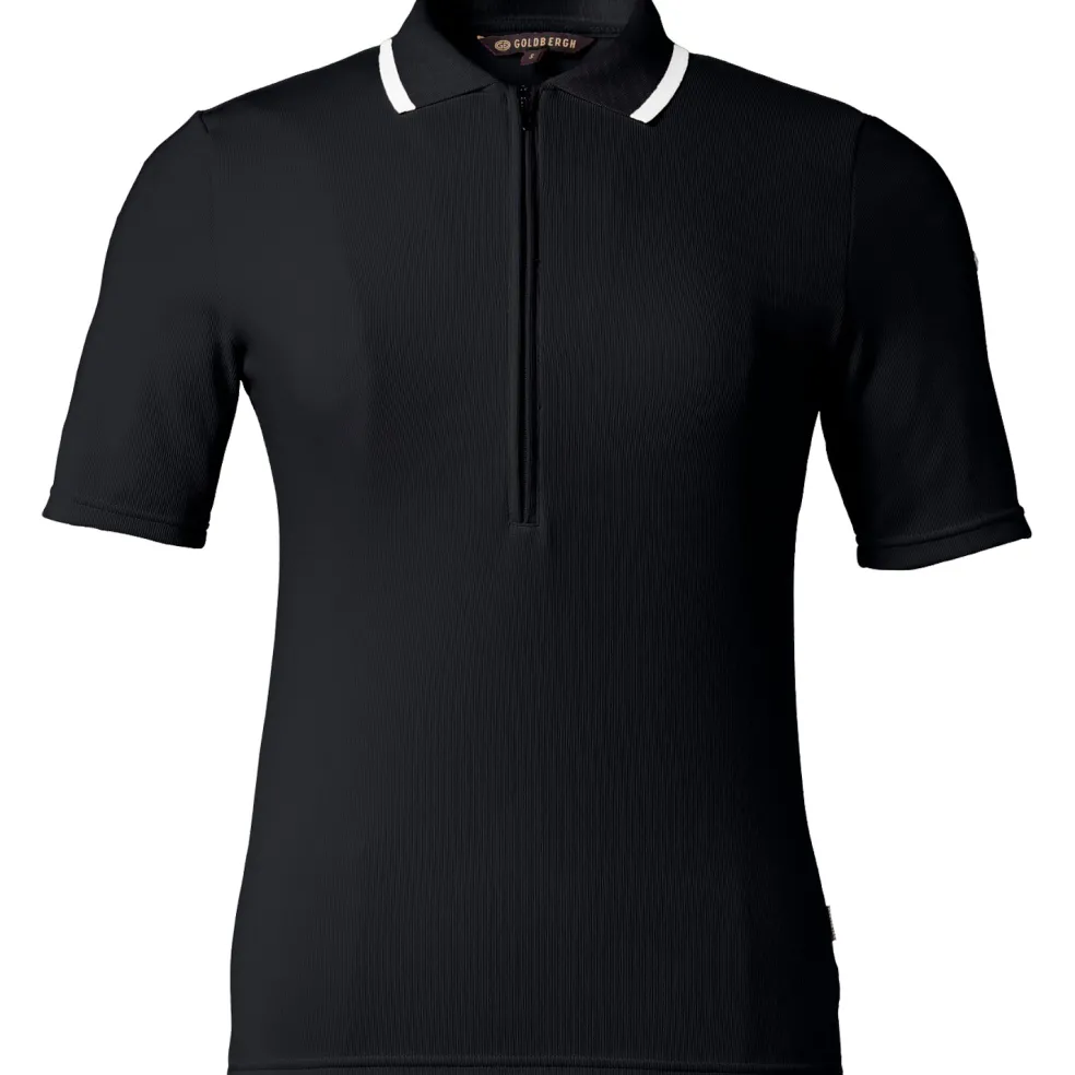 Deze Cassia polo van Goldbergh is ideaal om te dragen tijdens het sporten, omdat het materiaal transpiratievocht afvoert. Hierdoor blijft u tijdens het bewegen droog en koel. Aan de voorkant zit een verborgen rits, waardoor u de polo gemakkelijk aan- en uittrekt en kunt ventileren wanneer nodig.