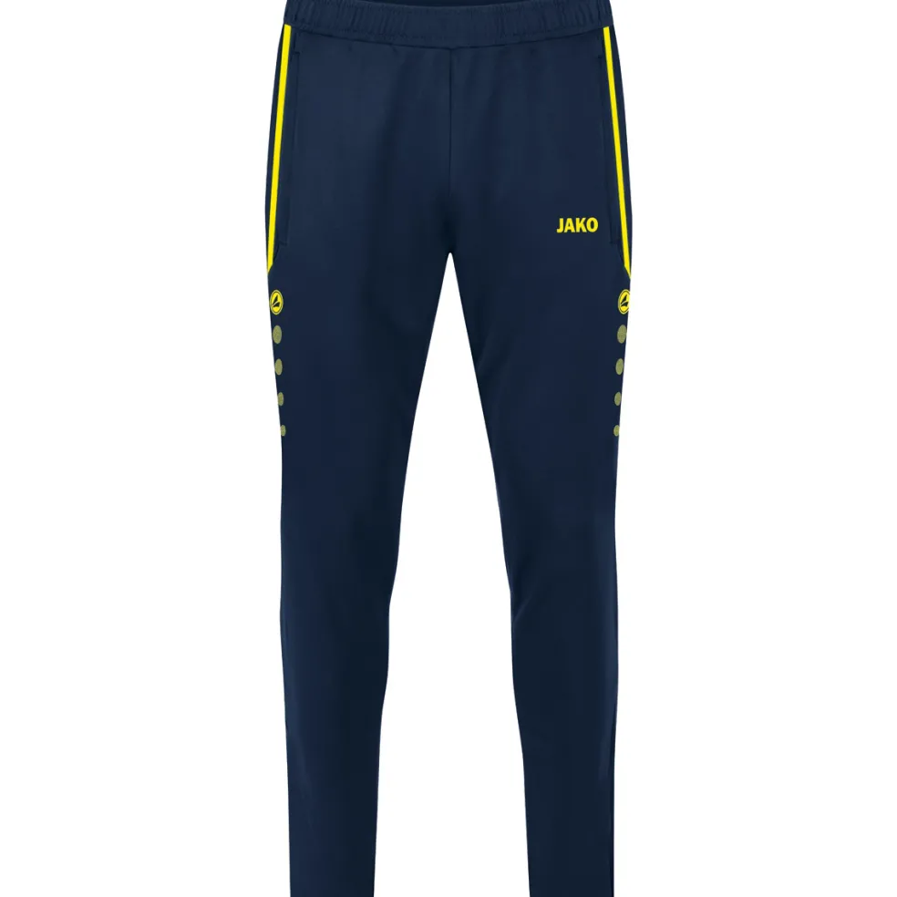 De Jako Allround trainingsbroek is gemaakt van 100% gerecycled polyester. De Polyester-Terry-stof is perfect geschikt voor intensieve workouts. De tweedelige elastische boord en tunnelkoord biedt de broek optimale grip. Berg uw waardevolle spullen eenvoudig op in de handige zijzakken met rits.