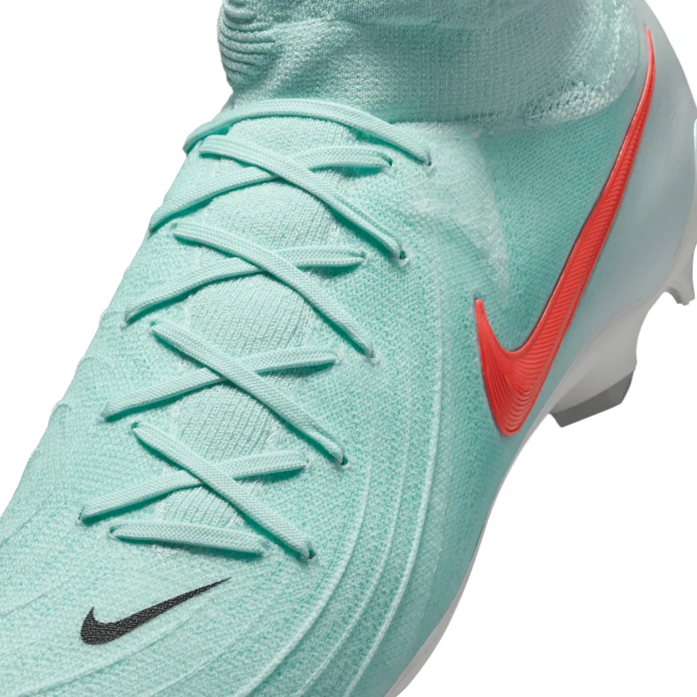 De Nike Phantom Luna 2 Pro FG voetbalschoenen hebben een stroeve bovenwerk van meerdere overlays voor een optimaal contact tussen de schoenen en de bal. Zo krijgt u veel meer controle over de bal, bij droog en vochtig weer. Door de Cyclone 360 profiel heeft u een goede grip op natte grasvelden, waardoor snelle manoeuvres makkelijk te maken zijn. Het Flyknit materiaal sluit goed aan rondom de enkel en deze heeft ribbels in de boord, zodat ook een bal hoger op je enkel makkelijker door te spelen valt.
