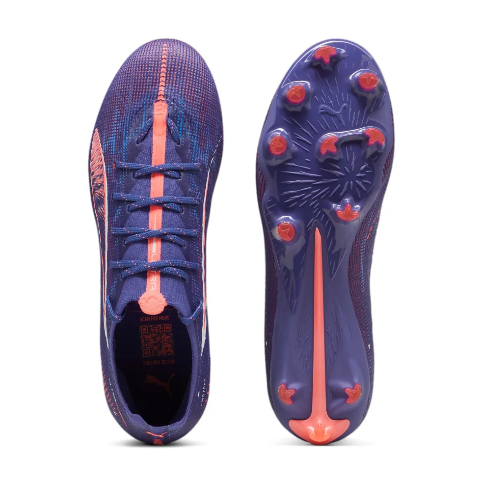 Met deze PUMA ULTRA 5 PRO FG AG voetbalschoenen kunt u snelle sprintjes maken en eenvoudig manoeuvres toepassen in een potje voetbal. De gloednieuwe SPEEDSYSTEM-buitenzool heeft FastTrax-noppen die voor een stevige grip zorgen op zowel stevige als kunstgras ondergronden. De schoenen zijn gemaakt met een PWRTAPE-ondersteuningsframe, waardoor uw voeten goed gestabiliseerd blijven. Het bovenwerk heeft een structuur die voor meer controle over de bal zorgt.