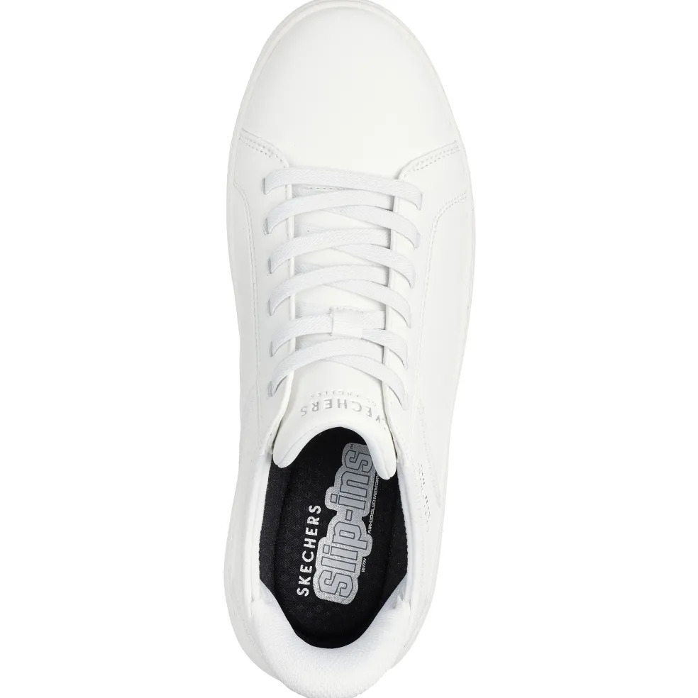 De Skechers Slip-ins: Court Break – Double Vented schoenen voor heren zijn heel eenvoudig, zonder handen, aan te trekken. Het Hands Free Slip-Ins systeem maakt dit mogelijk . Veters strikken is niet nodig door de elastische veter. Dit model Skechers is geïnspireerd op de tennisschoenen van vroeger en dragen heel comfortabel. De Heel Pillow geeft stabiliteit en de Air Cooled Memory Foam binnenzool zorgt voor comfortabele demping.